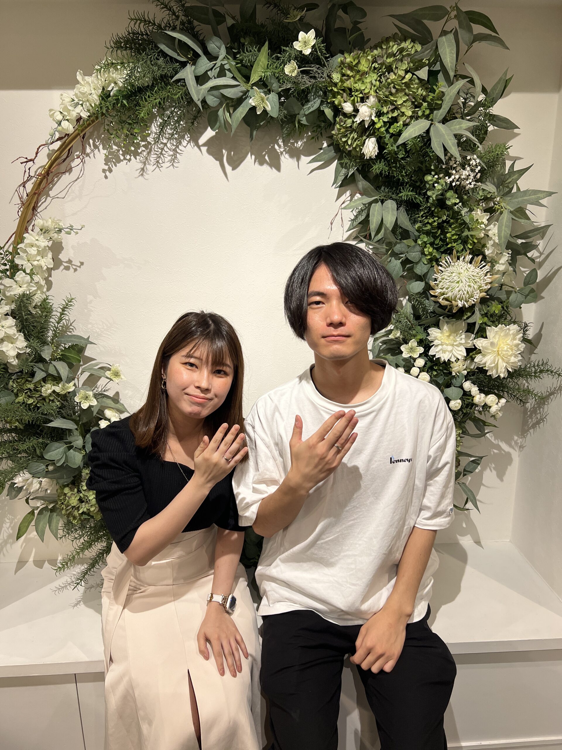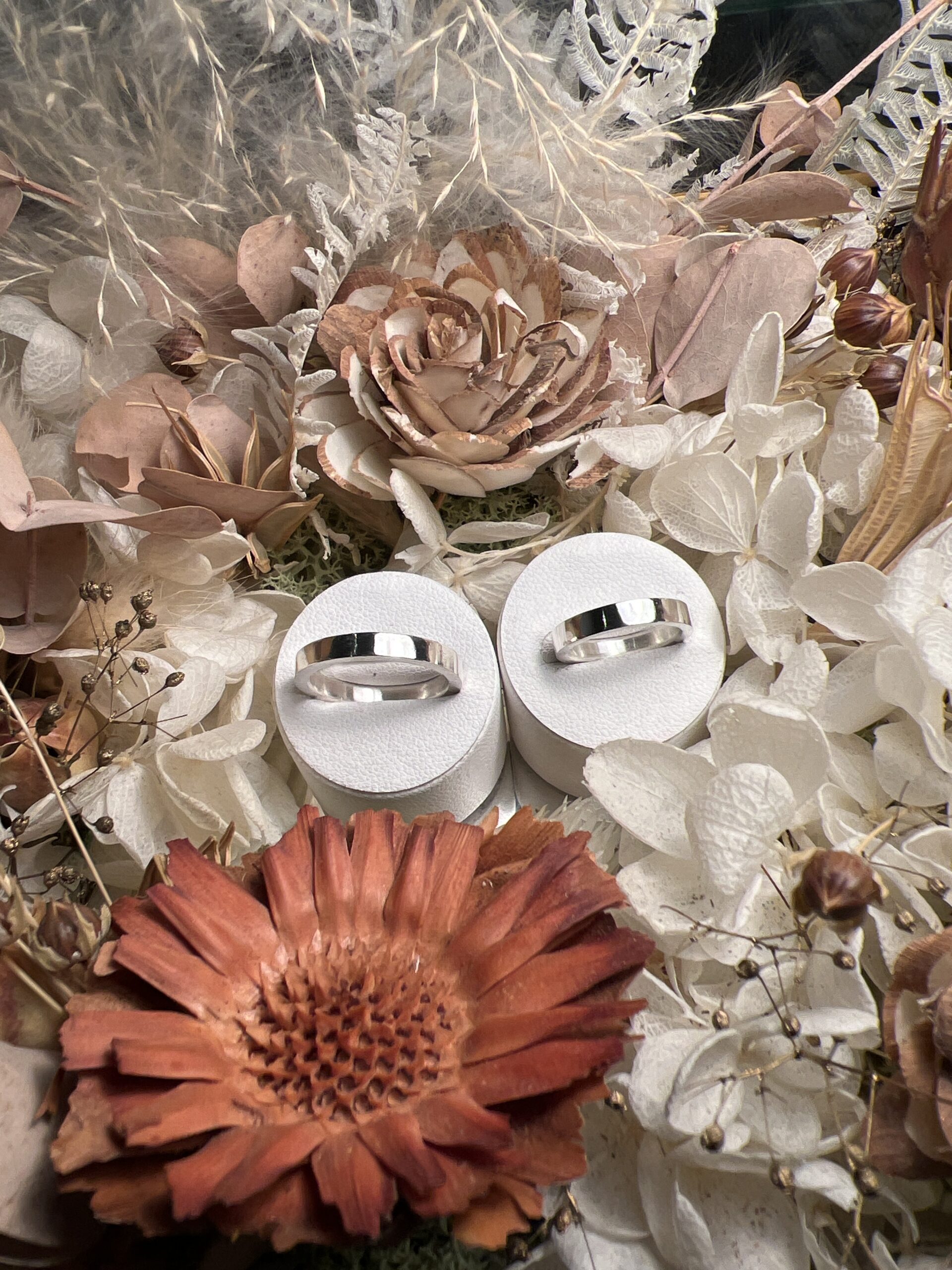 お二人ともお揃いで平打のミルグレイン、同じお色のカラーコーティングを選んでいただきました。