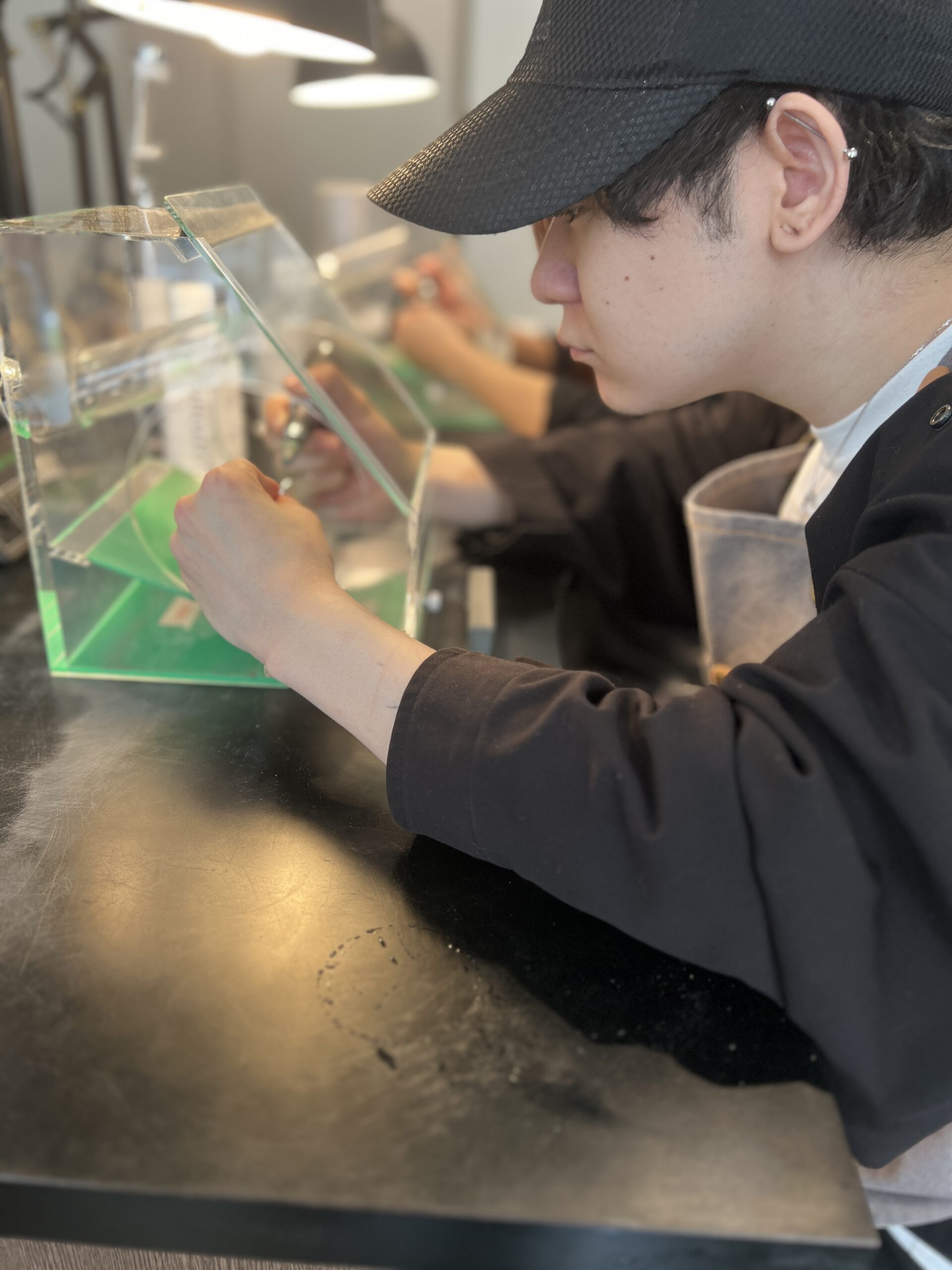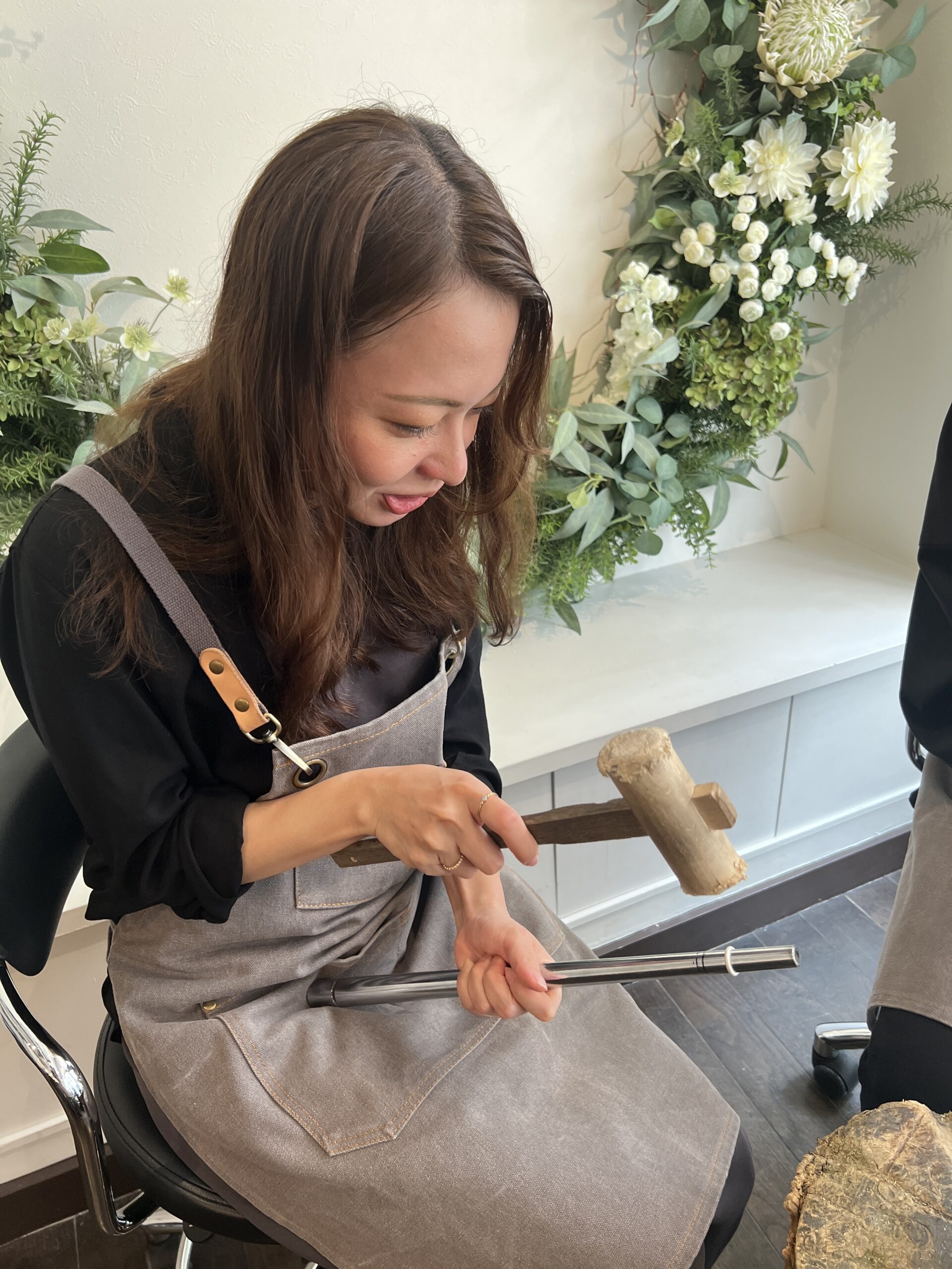 初めての体験のため、上手くできるか不安でしたが、説明がわかりやすく、コツを教えて頂けたため、失敗なくきれいなリングが出来上がりました。