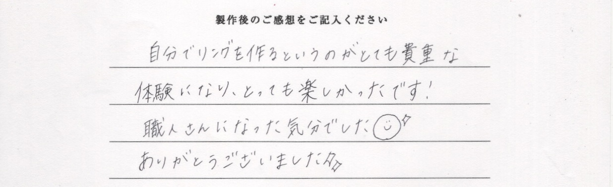 本日は当店でシルバーペアリングをご制作いただき、誠にありがとうございました。
