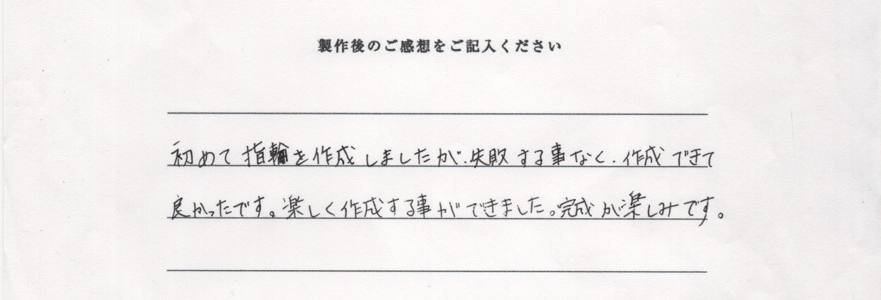 初めて指輪を作成しましたが、失敗することなく、作成できて良かったです。