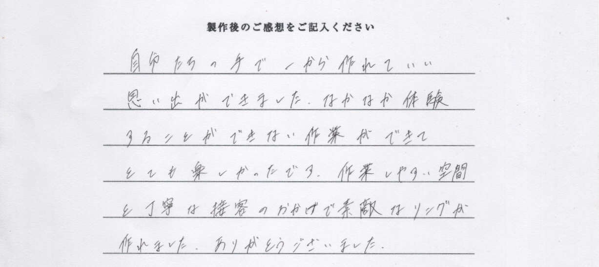 手作りペアリング|よい思い出になりました