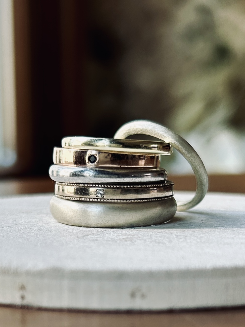 表面に独特の模様や加工を施したテクスチャードリング。