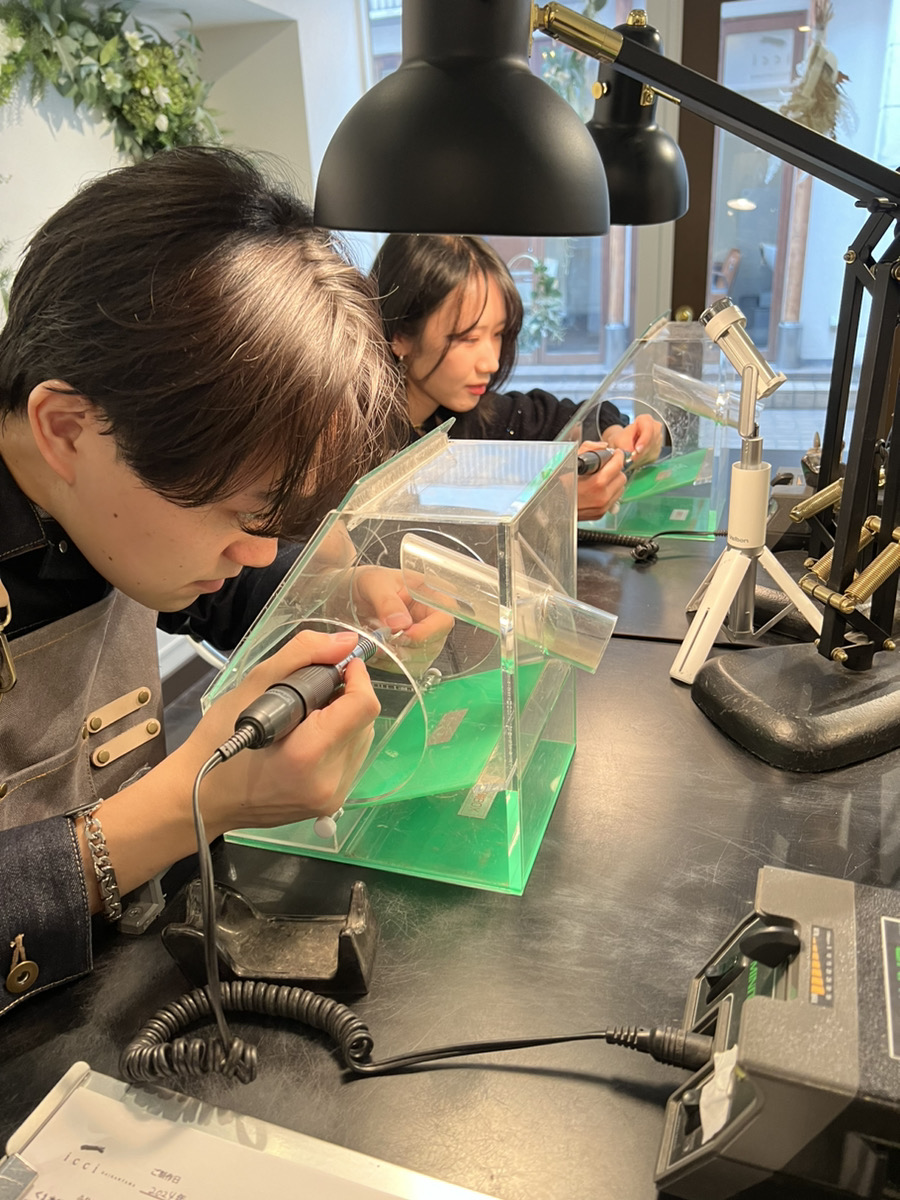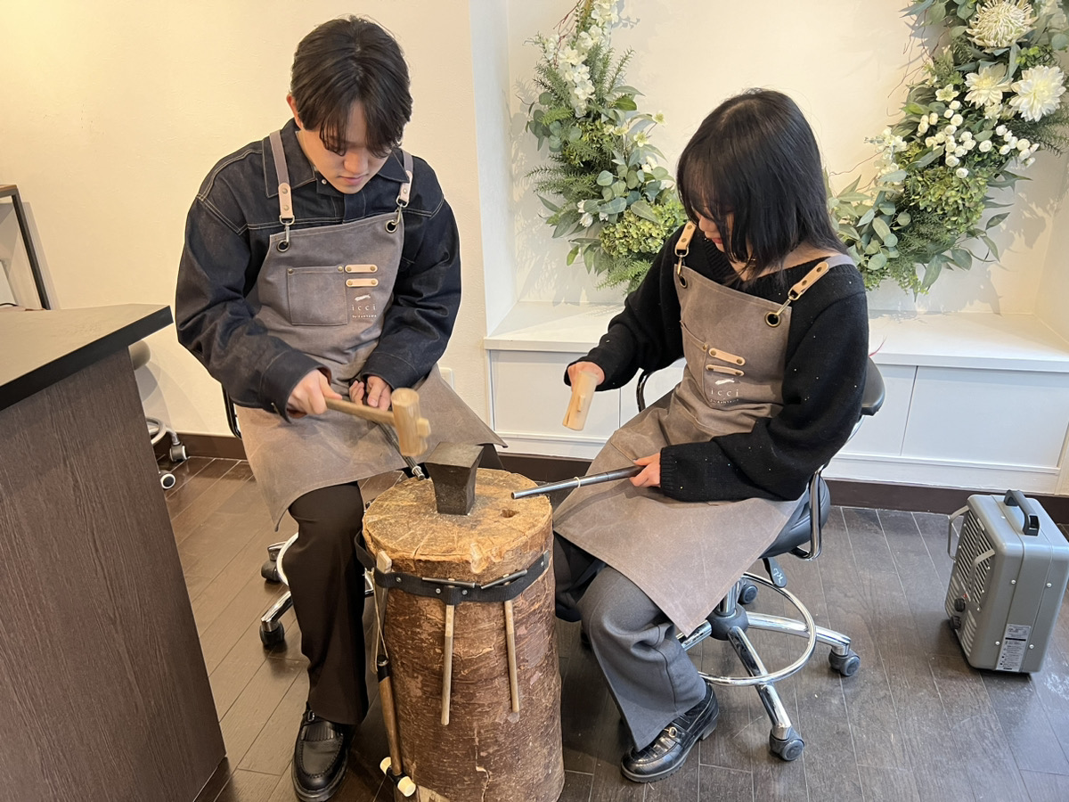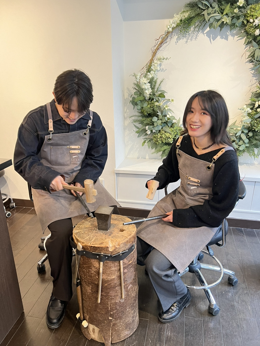 お二人とも楽しんで作業をしていただいて、仕上がりも喜んでいただけたようで嬉しく思います。今回は当日お持ち帰りご希望とのことでしたが、カラーリングや誕生石にもご興味を持っていただいておりましたので、ぜひまた別のデザインのものもお作りいただけたらと思います。